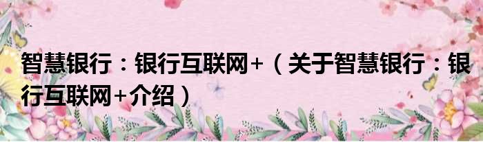 免责声明:本文由用户上传,如有侵权请联系删除!大家好,小钱来为大家解答以上的问题。智慧银行:银行互联网+,关于智慧银行:银行互联网+介绍这个很多人还不知道,现在让我们一起来看看吧!