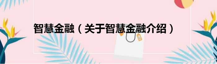 大家好,小钱来为大家解答以上的问题。智慧金融,关于智慧金融介绍这个很多人还不知道,现在让我们一起来看看吧!