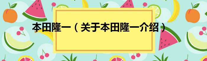 免责声明:本文由用户上传,如有侵权请联系删除!大家好,小钱来为大家解答以上的问题。本田隆一,关于本田隆一介绍这个很多人还不知道,现在让我们一起来看看吧!
