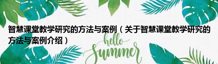 关于智慧课堂教学研究的方法与案例到此分享完毕,希望能帮助到您。