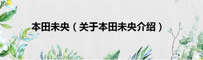 大家好,小钱来为大家解答以上的问题。本田未央,关于本田未央介绍这个很多人还不知道,现在让我们一起来看看吧!