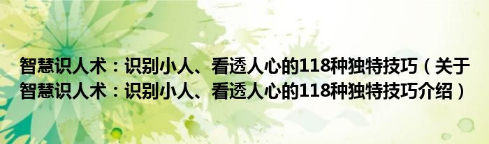 关于智慧识人术:识别小人、看透人心的118种独特技巧到此分享完毕,希望能帮助到您。