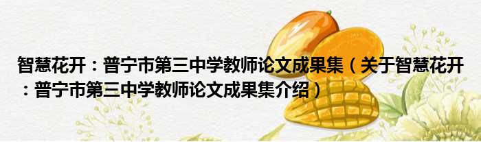 1、 《智慧花开:普宁市第三中学教师论文成果集》是2019年3月暨南大学出版社出版的图书。