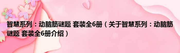 1、 《智慧系列:动脑筋谜题(套装全6册)》是2012年8月1日北京科学技术出版社出版的图书,作者是[英] 苏珊娜·莉 。