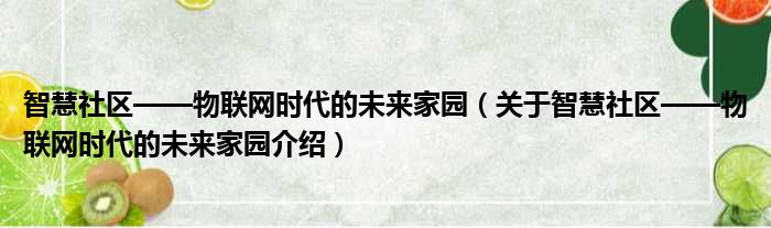 免责声明:本文由用户上传,如有侵权请联系删除!大家好,小钱来为大家解答以上的问题。智慧社区——物联网时代的未来家园,关于智慧社区——物联网时代的未来家园介绍这个很多人还不知道,现在让我们一起来看看吧!