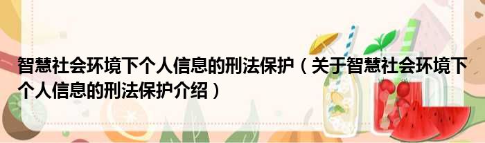 关于智慧社会环境下个人信息的刑法保护到此分享完毕,希望能帮助到您。