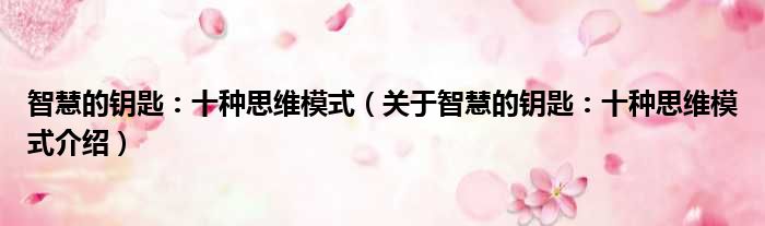 关于智慧的钥匙:十种思维模式到此分享完毕,希望能帮助到您。