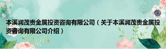 关于本溪润茂贵金属投资咨询有限公司到此分享完毕,希望能帮助到您。