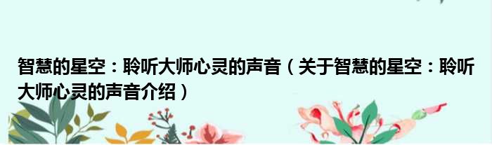 大家好,小钱来为大家解答以上的问题。智慧的星空:聆听大师心灵的声音,关于智慧的星空:聆听大师心灵的声音介绍这个很多人还不知道,现在让我们一起来看看吧!