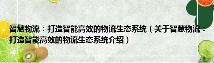 免责声明:本文由用户上传,如有侵权请联系删除!大家好,小钱来为大家解答以上的问题。智慧物流:打造智能高效的物流生态系统,关于智慧物流:打造智能高效的物流生态系统介绍这个很多人还不知道,现在让我们一起来看看吧!