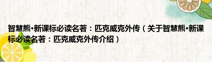 关于智慧熊·新课标必读名著:匹克威克外传到此分享完毕,希望能帮助到您。