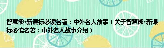 关于智慧熊·新课标必读名著:中外名人故事到此分享完毕,希望能帮助到您。