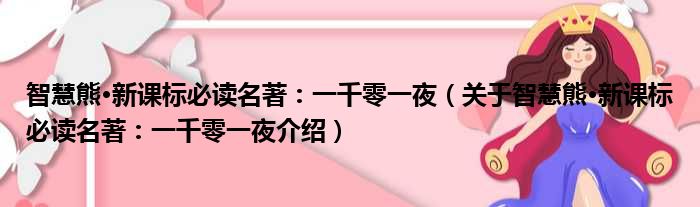 大家好,小钱来为大家解答以上的问题。智慧熊·新课标必读名著:一千零一夜,关于智慧熊·新课标必读名著:一千零一夜介绍这个很多人还不知道,现在让我们一起来看看吧!