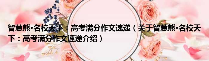 关于智慧熊·名校天下:高考满分作文速递到此分享完毕,希望能帮助到您。