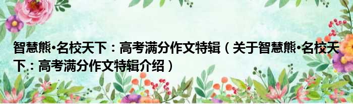 关于智慧熊·名校天下:高考满分作文特辑到此分享完毕,希望能帮助到您。