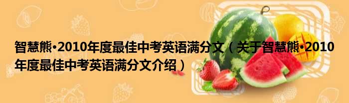 关于智慧熊·2010年度最佳中考英语满分文到此分享完毕,希望能帮助到您。