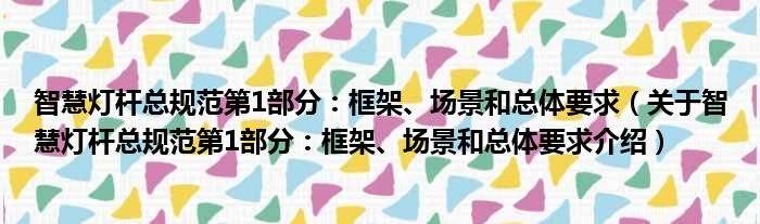 大家好,小钱来为大家解答以上的问题。智慧灯杆总规范第1部分:框架、场景和总体要求,关于智慧灯杆总规范第1部分:框架、场景和总体要求介绍这个很多人还不知道,现在让我们一起来看看吧!