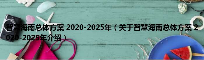 免责声明:本文由用户上传,如有侵权请联系删除!大家好,小钱来为大家解答以上的问题。智慧海南总体方案 2020-2025年,关于智慧海南总体方案 2020-2025年介绍这个很多人还不知道,现在让我们一起来看看吧!