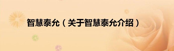 大家好,小钱来为大家解答以上的问题。智慧泰允,关于智慧泰允介绍这个很多人还不知道,现在让我们一起来看看吧!