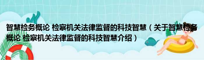 关于智慧检务概论 检察机关法律监督的科技智慧到此分享完毕,希望能帮助到您。