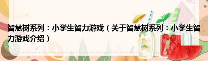 免责声明:本文由用户上传,如有侵权请联系删除!大家好,小钱来为大家解答以上的问题。智慧树系列:小学生智力游戏,关于智慧树系列:小学生智力游戏介绍这个很多人还不知道,现在让我们一起来看看吧!