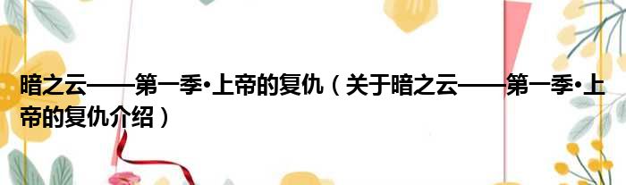 免责声明:本文由用户上传,如有侵权请联系删除!大家好,小钱来为大家解答以上的问题。暗之云——第一季·上帝的复仇,关于暗之云——第一季·上帝的复仇介绍这个很多人还不知道,现在让我们一起来看看吧!