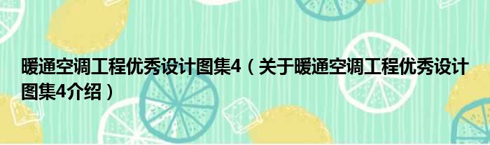 1、 《暖通空调工程优秀设计图集4》是中国建筑学会暖通空调分会组织的“中国建筑学会暖通空调工程优秀设计奖”获奖作品集锦。
