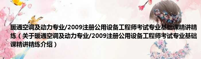 1、 《暖通空调及动力专业/2009注册公用设备工程师考试专业基础课精讲精练》是2009年中国电力出版社出版的图书。