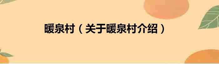 免责声明:本文由用户上传,如有侵权请联系删除!大家好,小钱来为大家解答以上的问题。暖泉村,关于暖泉村介绍这个很多人还不知道,现在让我们一起来看看吧!