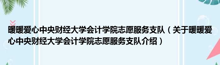 关于暖暖爱心中央财经大学会计学院志愿服务支队到此分享完毕,希望能帮助到您。