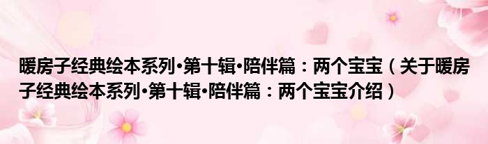 关于暖房子经典绘本系列·第十辑·陪伴篇:两个宝宝到此分享完毕,希望能帮助到您。