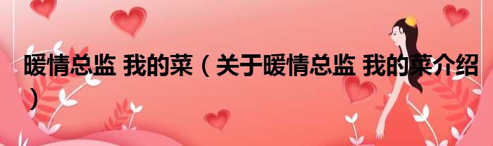大家好,小钱来为大家解答以上的问题。暖情总监,我的菜,关于暖情总监,我的菜介绍这个很多人还不知道,现在让我们一起来看看吧!