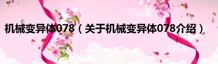大家好,小钱来为大家解答以上的问题。机械变异体078,关于机械变异体078介绍这个很多人还不知道,现在让我们一起来看看吧!