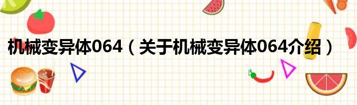 免责声明:本文由用户上传,如有侵权请联系删除!大家好,小钱来为大家解答以上的问题。机械变异体064,关于机械变异体064介绍这个很多人还不知道,现在让我们一起来看看吧!