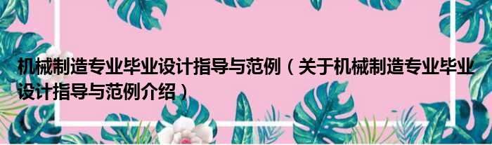 关于机械制造专业毕业设计指导与范例到此分享完毕,希望能帮助到您。