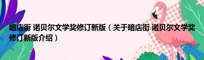 大家好,小钱来为大家解答以上的问题。暗店街 诺贝尔文学奖修订新版,关于暗店街 诺贝尔文学奖修订新版介绍这个很多人还不知道,现在让我们一起来看看吧!