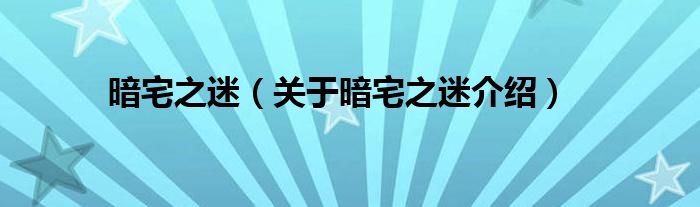 大家好,小钱来为大家解答以上的问题。暗宅之迷,关于暗宅之迷介绍这个很多人还不知道,现在让我们一起来看看吧!