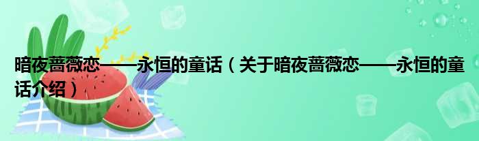 免责声明:本文由用户上传,如有侵权请联系删除!大家好,小钱来为大家解答以上的问题。暗夜蔷薇恋——永恒的童话,关于暗夜蔷薇恋——永恒的童话介绍这个很多人还不知道,现在让我们一起来看看吧!