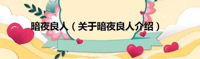 大家好,小钱来为大家解答以上的问题。暗夜良人,关于暗夜良人介绍这个很多人还不知道,现在让我们一起来看看吧!