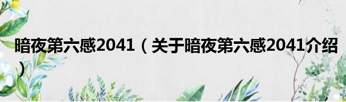 免责声明:本文由用户上传,如有侵权请联系删除!大家好,小钱来为大家解答以上的问题。暗夜第六感2041,关于暗夜第六感2041介绍这个很多人还不知道,现在让我们一起来看看吧!