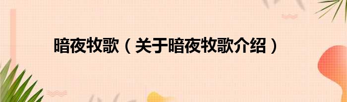免责声明:本文由用户上传,如有侵权请联系删除!大家好,小钱来为大家解答以上的问题。暗夜牧歌,关于暗夜牧歌介绍这个很多人还不知道,现在让我们一起来看看吧!
