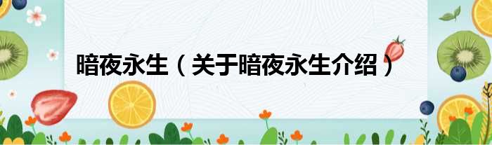 免责声明:本文由用户上传,如有侵权请联系删除!大家好,小钱来为大家解答以上的问题。暗夜永生,关于暗夜永生介绍这个很多人还不知道,现在让我们一起来看看吧!