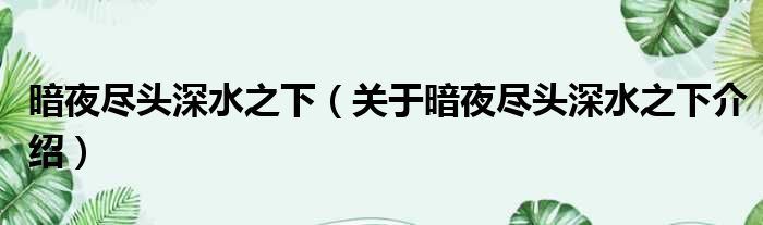 关于暗夜尽头深水之下到此分享完毕,希望能帮助到您。