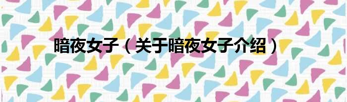 大家好,小钱来为大家解答以上的问题。暗夜女子,关于暗夜女子介绍这个很多人还不知道,现在让我们一起来看看吧!