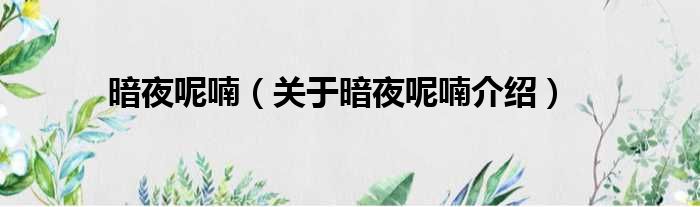 免责声明:本文由用户上传,如有侵权请联系删除!大家好,小钱来为大家解答以上的问题。暗夜呢喃,关于暗夜呢喃介绍这个很多人还不知道,现在让我们一起来看看吧!
