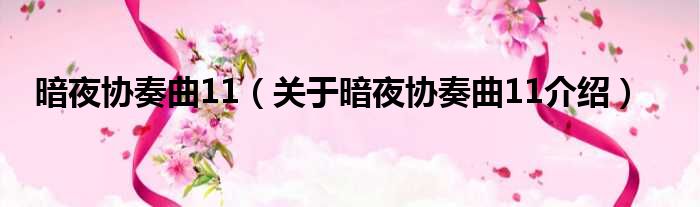 大家好,小钱来为大家解答以上的问题。暗夜协奏曲11,关于暗夜协奏曲11介绍这个很多人还不知道,现在让我们一起来看看吧!