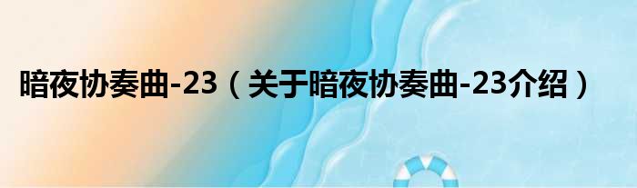 大家好,小钱来为大家解答以上的问题。暗夜协奏曲-23,关于暗夜协奏曲-23介绍这个很多人还不知道,现在让我们一起来看看吧!