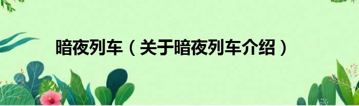 免责声明:本文由用户上传,如有侵权请联系删除!大家好,小钱来为大家解答以上的问题。暗夜列车,关于暗夜列车介绍这个很多人还不知道,现在让我们一起来看看吧!