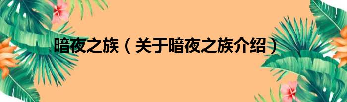 免责声明:本文由用户上传,如有侵权请联系删除!大家好,小钱来为大家解答以上的问题。暗夜之族,关于暗夜之族介绍这个很多人还不知道,现在让我们一起来看看吧!