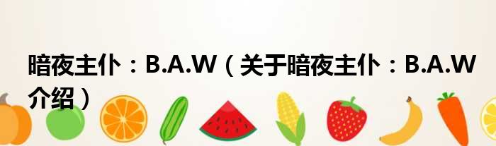 免责声明:本文由用户上传,如有侵权请联系删除!大家好,小钱来为大家解答以上的问题。暗夜主仆:B.A.W,关于暗夜主仆:B.A.W介绍这个很多人还不知道,现在让我们一起来看看吧!